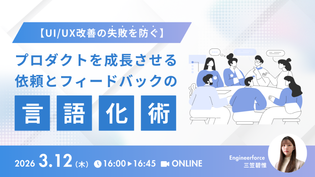 「【UI/UX改善の失敗を防ぐ】プロダクトを共に成長させる依頼とフィードバックの言語化術」 を開催いたします。
