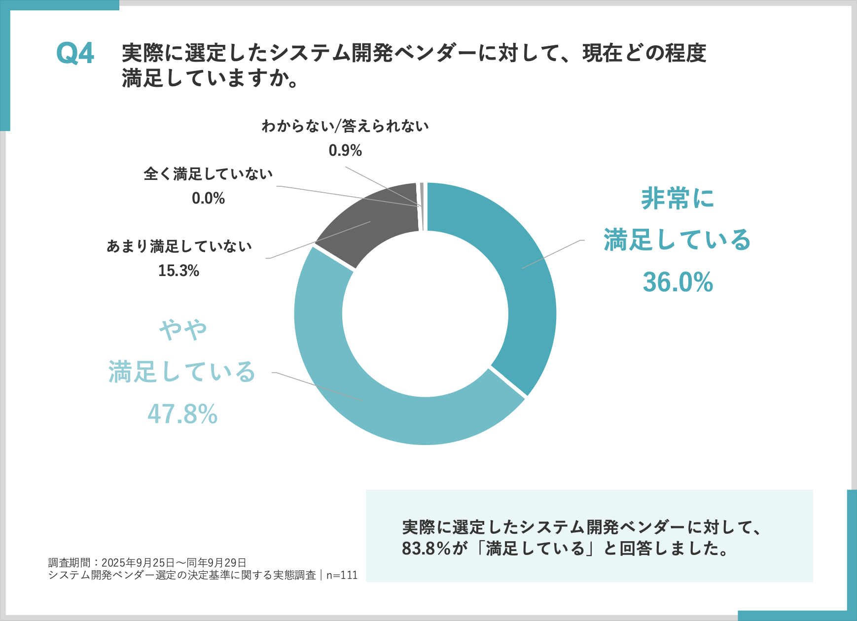 では、その基準において発注したベンダーに対する満足度はどうなっているでしょうか。