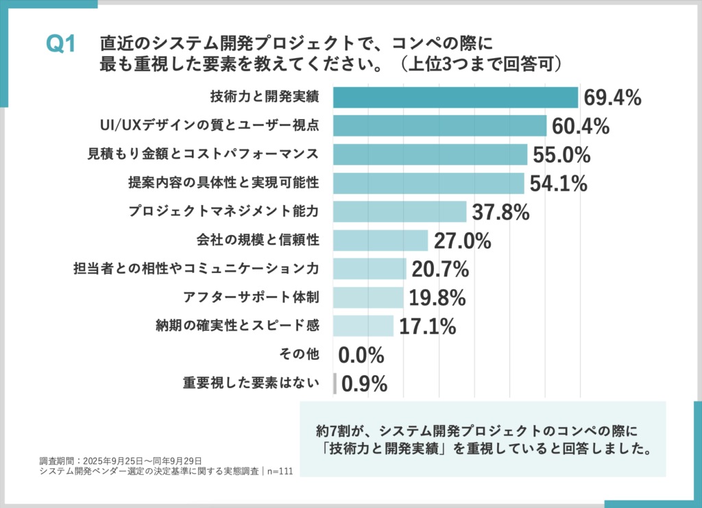 【ベンダー評価基準が判明】111名のベンダー選定に関わった意思決定者に聞いた、システム開発ベンダー選定の決定基準に関する実態調査